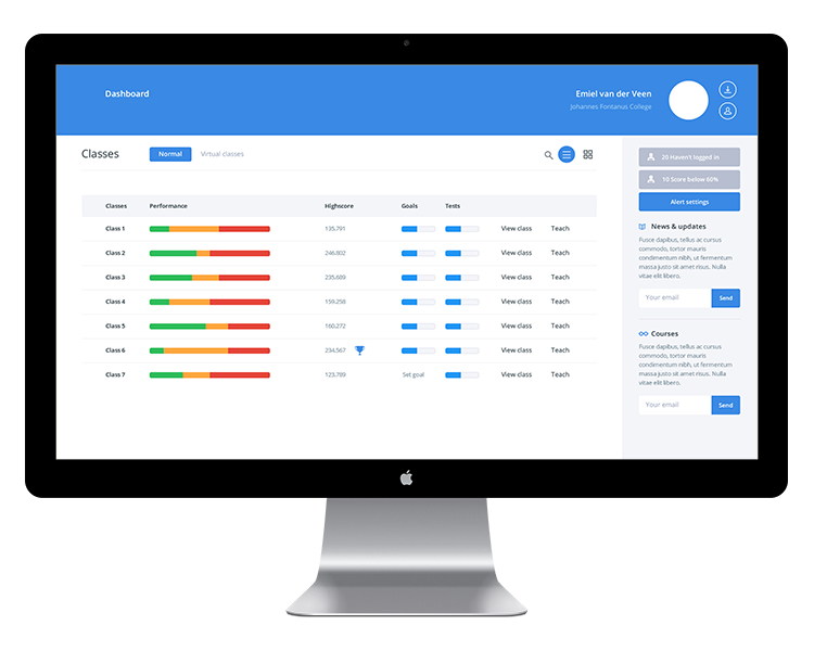 Als docent heeft u altijd inzicht in de vorderingen en prestaties van de klas én de individuele leerling. Tevens kunt u eenvoudig de groei van de leerling zien.